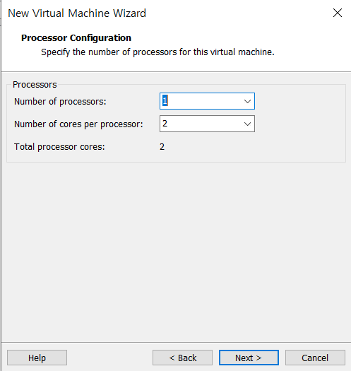 cpu x core는 최소 4core는 되야 하지만, 노트북 사양을 고려하여 1cpu - 2core로 설정