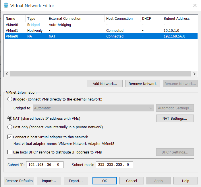 각 Host-Only와 Nat에 대해서 아래와 같이 설정해줍니다.