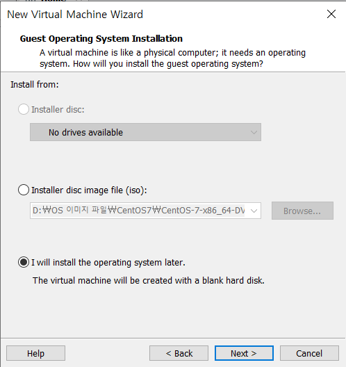 (추후에 ISO 파일을 로드하겠다는 뜻)