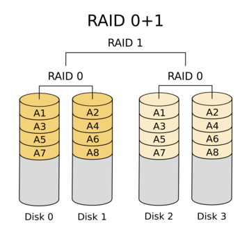 - RAID1+0은 데이터가 먼저 미러링되고 그다음 Striping됨.